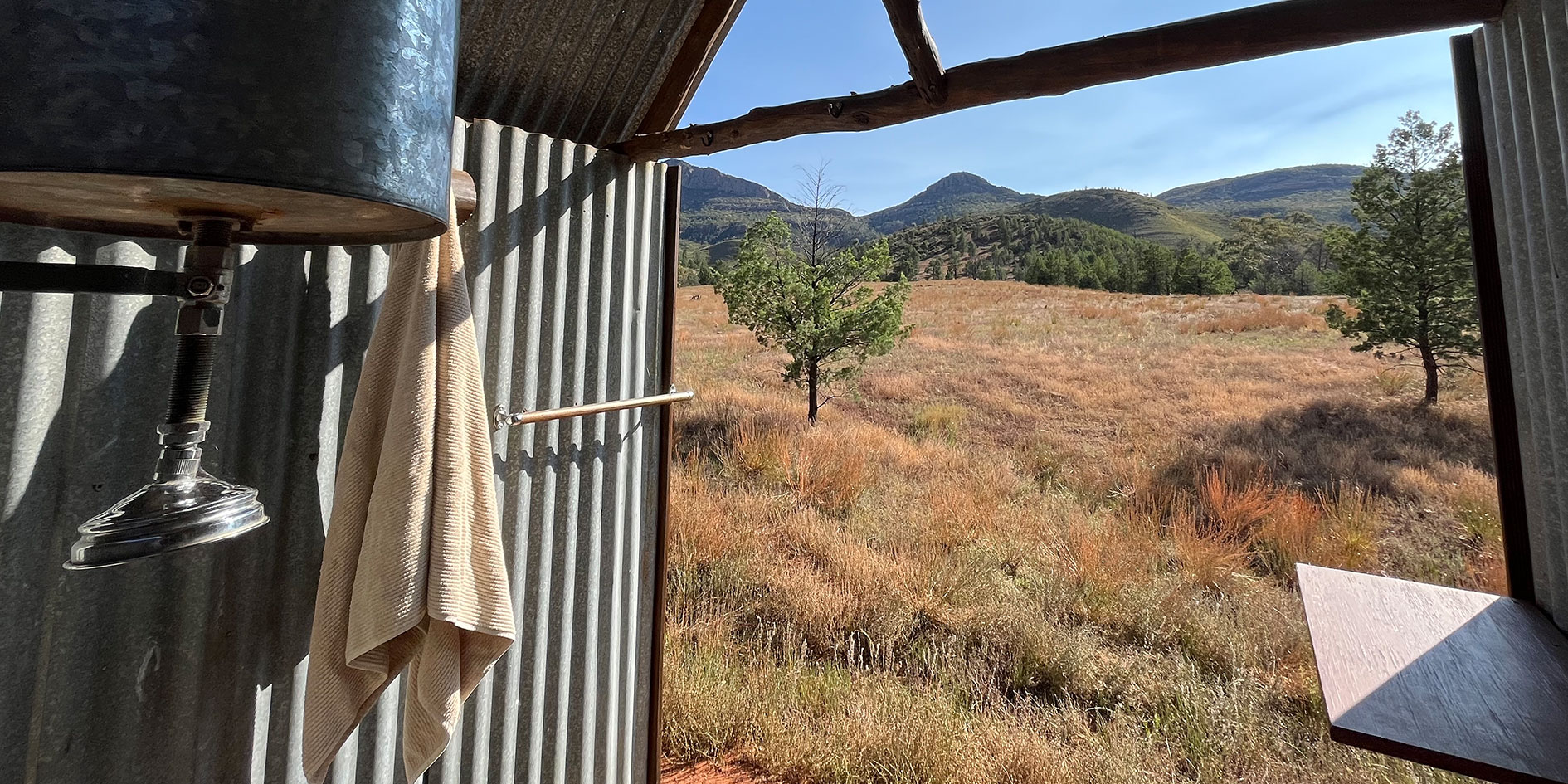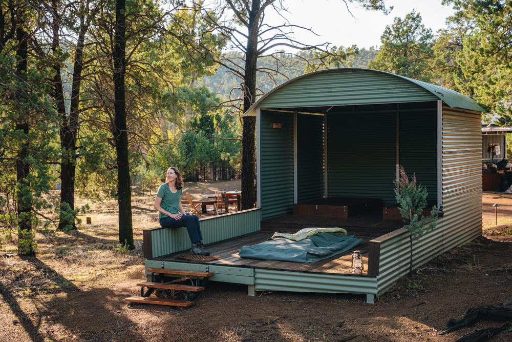 One of five timber swag decks will be your room for the night. Each are slightly elevated with a half metre corrugated iron screen around three sides to give privacy, the fourth side is left open to the views over the countryside, while above you is the night sky and a canopy of stars.